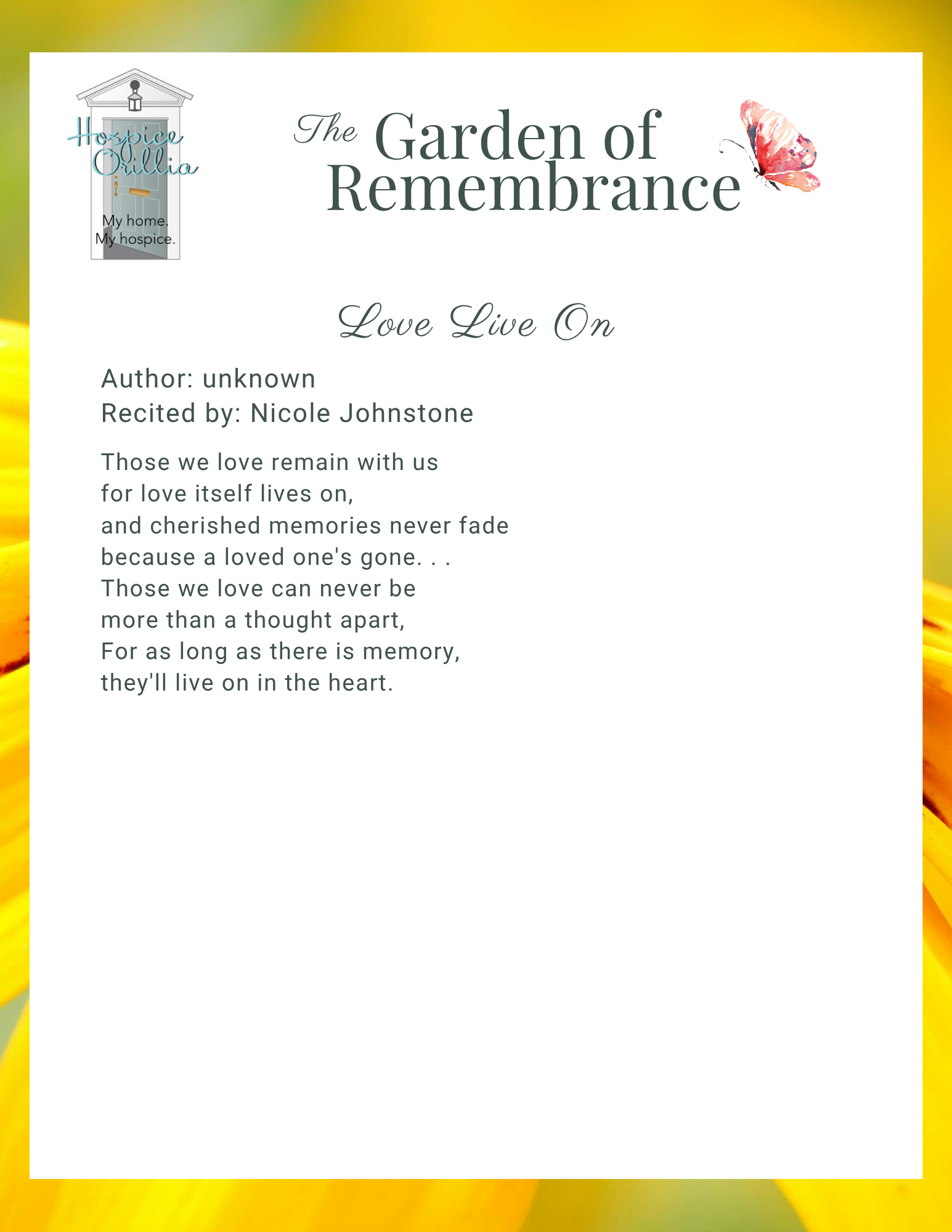 In an effort to embrace community connection, this event will be offered as an in-person, intimate memorial event with a virtual component for those unable to attend in person.