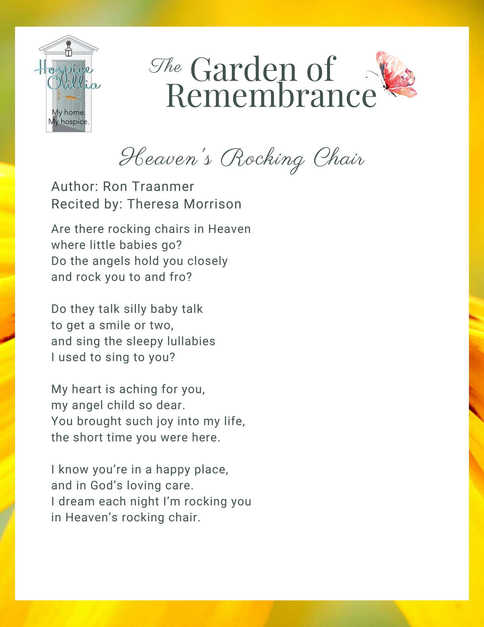 The interactive ceremony will include music, poetry, readings and more importantly a time to reflect and be with others who have experienced loss.